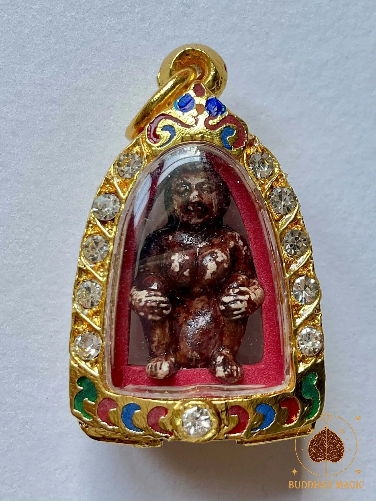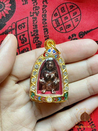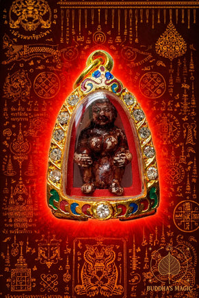 Il s’agit d’une première édition consacrée par le très vénérable Luang Pho Phun du Wat Pa Ban Sang, situé dans la province de Roi Et. Cette série est reconnue pour son authenticité rituelle et la rigueur des méthodes employées lors de sa fabrication et de sa consécration.