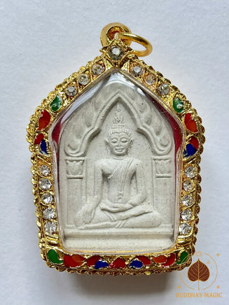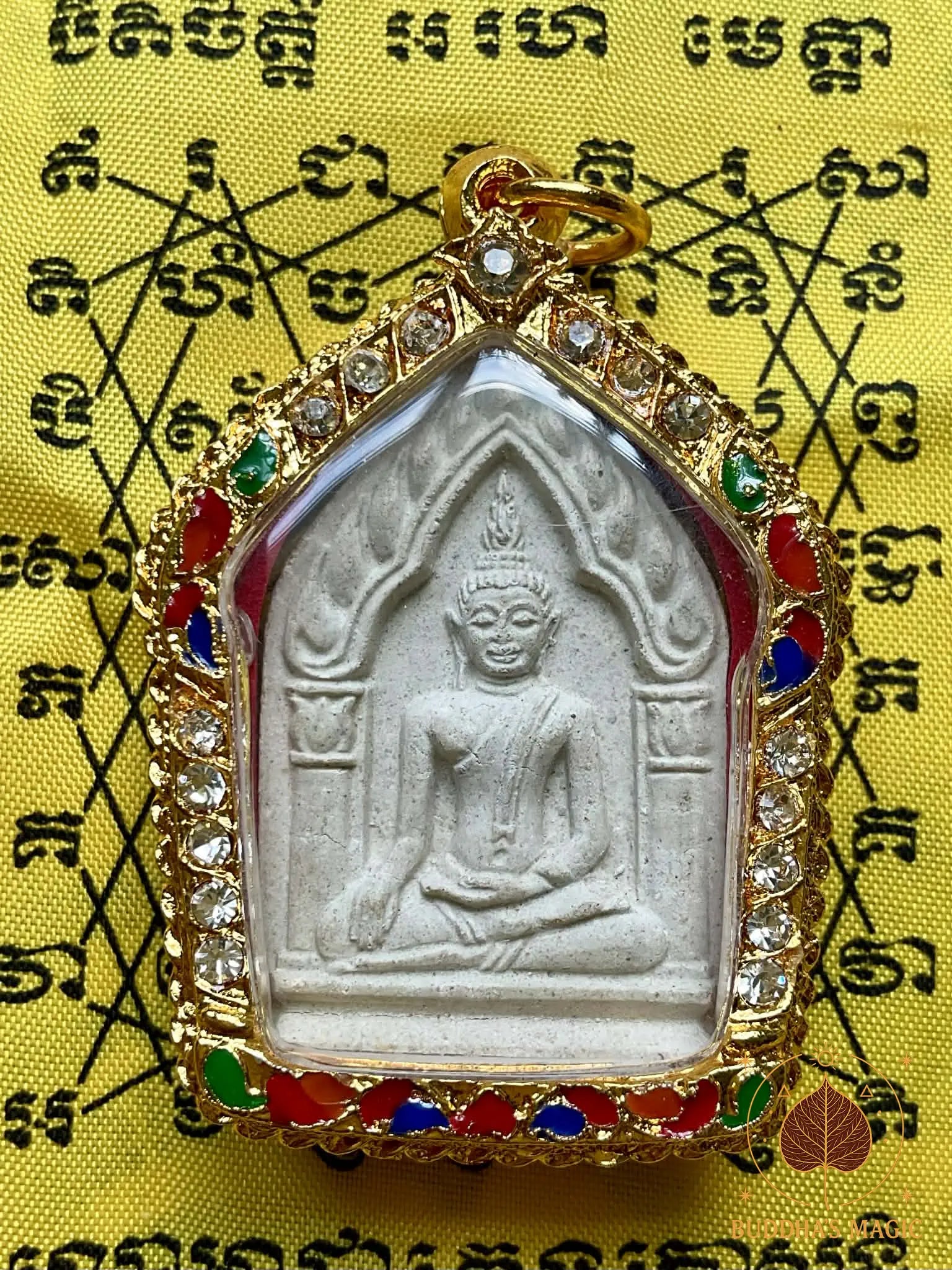 Cette amulette est proposée dans un excellent état de conservation, montée dans un reliquaire décoratif de qualité, respectueux de la tradition thaïlandaise.
