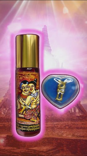 Ce set d'amour exclusif réunit trois supports sacrés de la magie thaïe du charme : une huile de séduction Nam Man Sanaeh Siang Phaeng et cire sacrée bleue Kee Phung et un papier du temple représentant un couple enlacé entouré de yants et d'incantations. Ensemble, ils forment un rituel complet pour l’amour, le magnétisme personnel et l’harmonie affective.