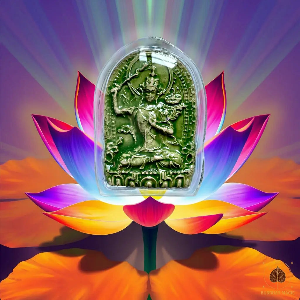 Tsa Tsa Manjushri en céramique verte – Wat Bhoman Khunaram # 849 Magic of the Buddha