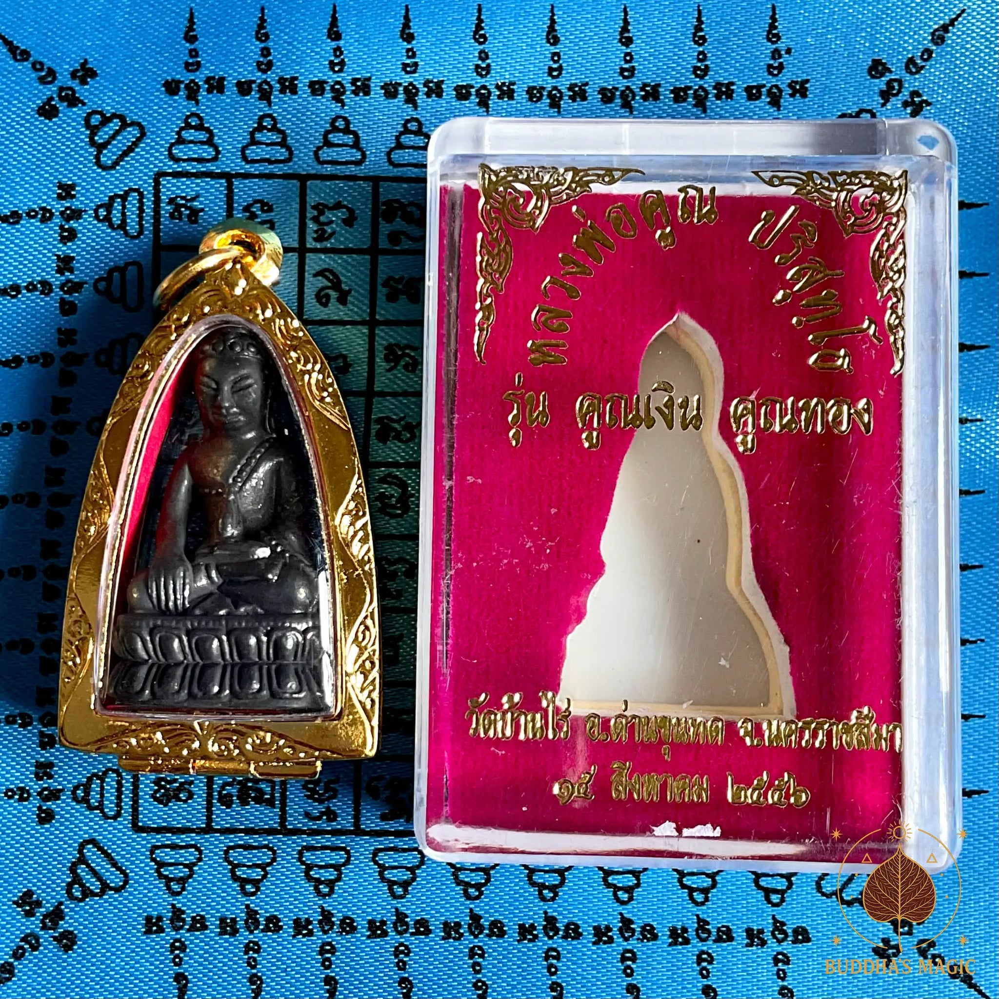 Ces amulettes ont été produites en série limitée de 999 pièces numérotées, elles sont composée de métal alchimique Loh Dam et leur base a été gravée de Yant par le Très Vénérable Luang Phor Koon lui même.