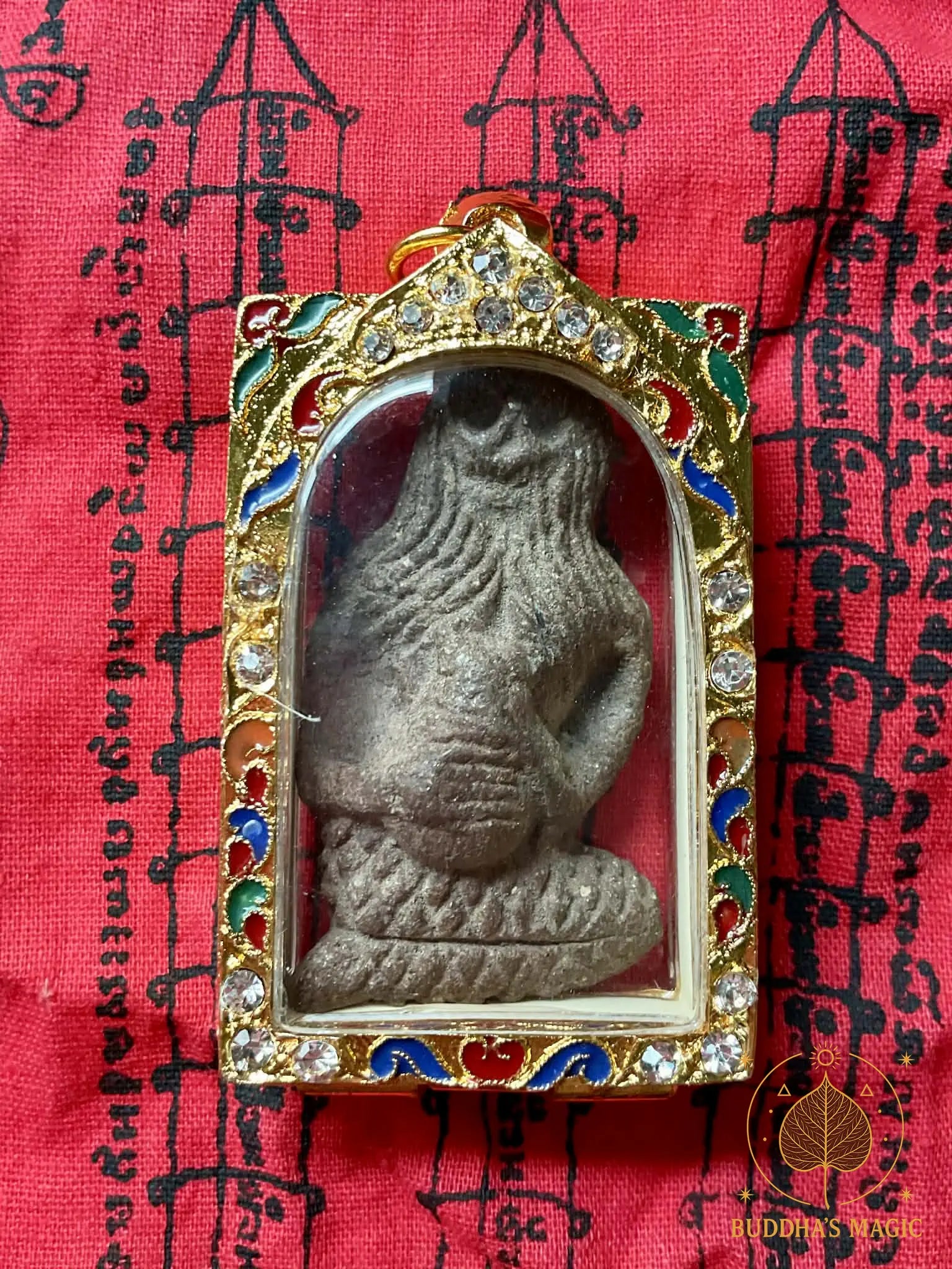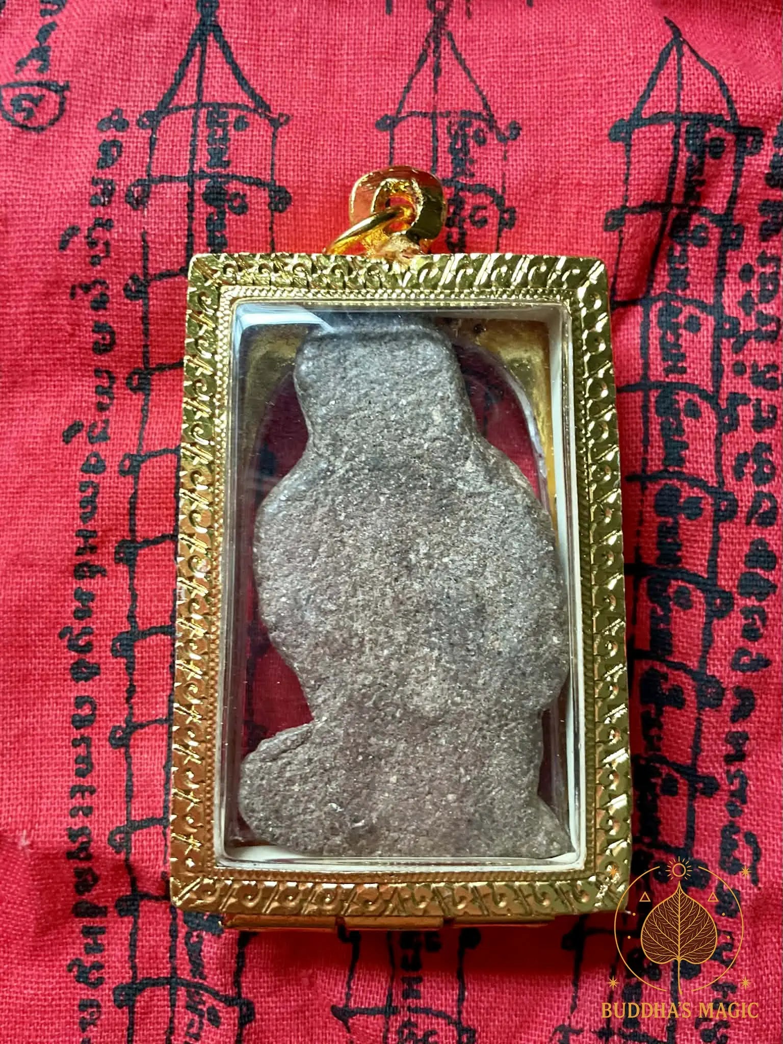 Cette amulette Mae Praï, connue sous le nom de « La Mère des Richesses », est une pièce ancienne issue des traditions magiques populaires de l’Isan. Elle a été consacrée par le vénérable Ajarn Sak-Yant Moh Saeng, maître en tatouages rituels réputé d’Ubon Ratchathani, spécialiste des esprits féminins bienveillants liés à la prospérité, à la protection du foyer et à l’abondance matérielle.