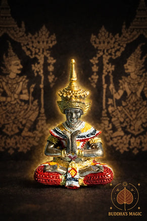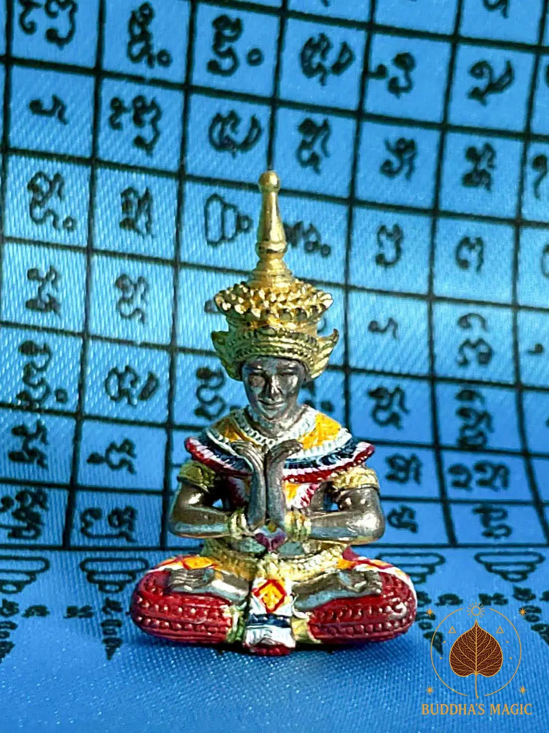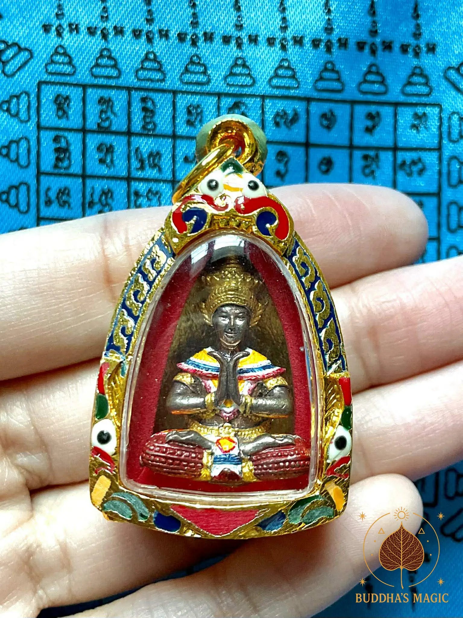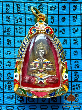 Cette très belle amulette Manora Roon Mayo est une création sacrée consacrée en 2016 lors d’une cérémonie conjointe menée par deux vénérables maîtres du sud de la Thaïlande. Elle représente une danseuse Manora, figure emblématique des traditions anciennes du sud thaïlandais, associée à la grâce, au charme et à la protection spirituelle.