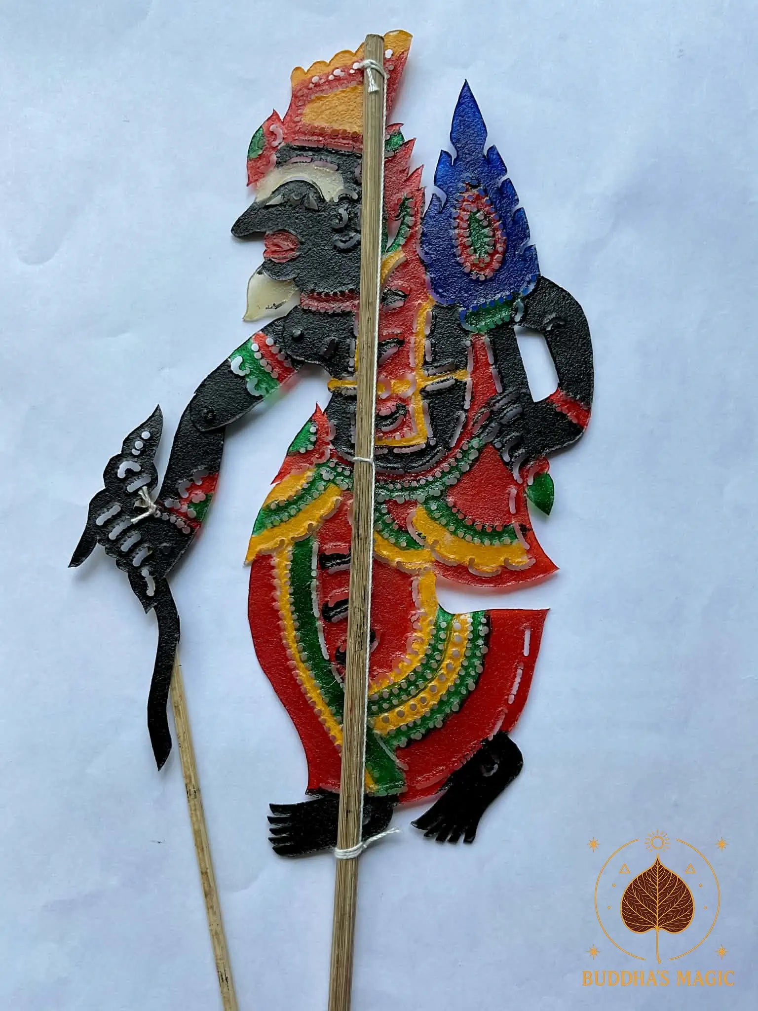 Chaque personnage est découpé et peint avec soin, selon les codes traditionnels, puis monté sur tiges pour être manipulé derrière l’écran lors des représentations. Ces marionnettes peuvent être utilisées aussi bien comme objets décoratifs que comme pièces ethnographiques ou supports de transmission culturelle.