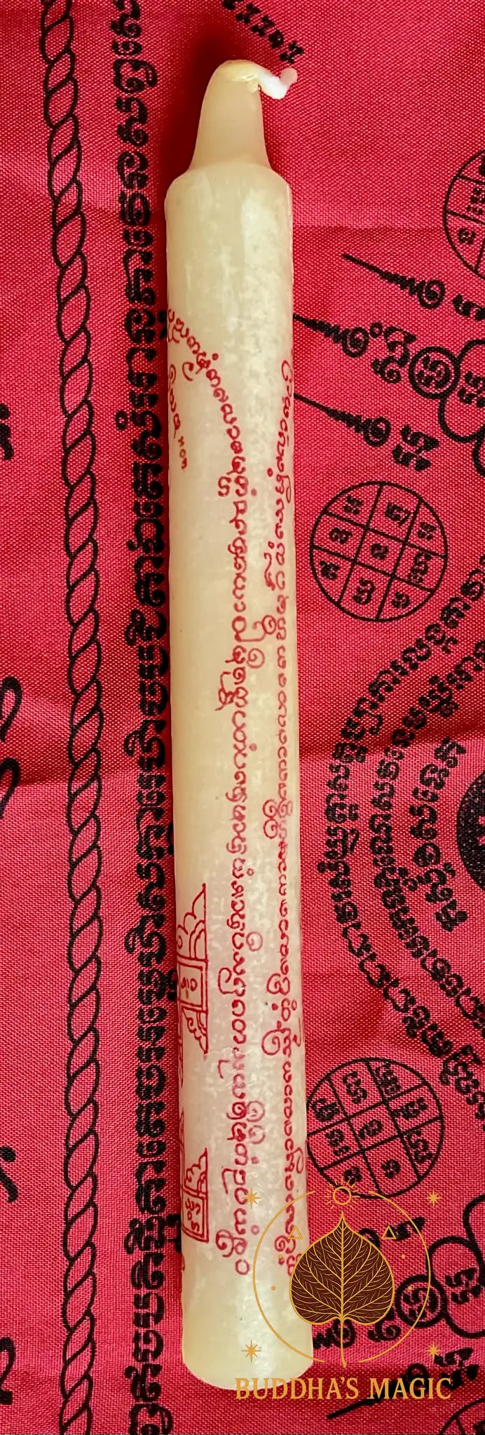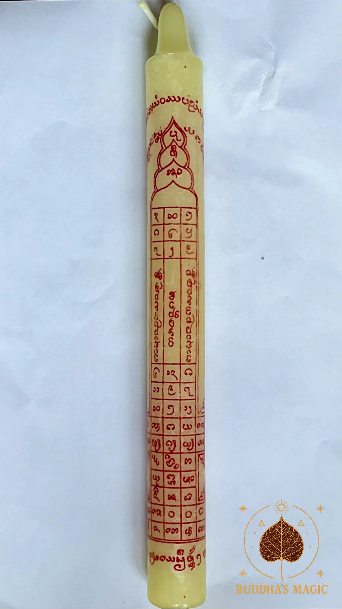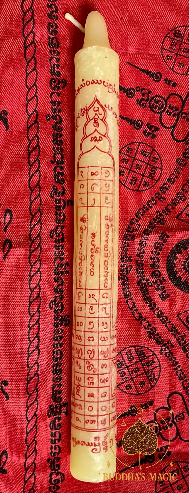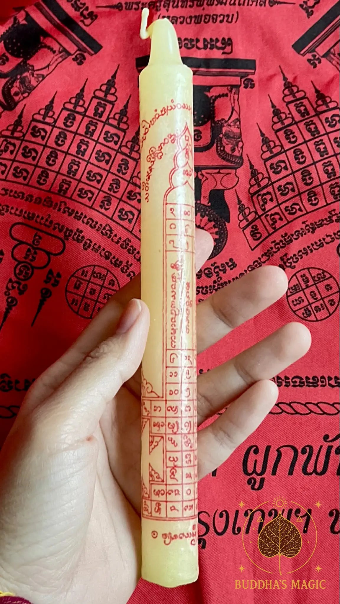 Cette bougie sacrée, connue sous le nom de Tian Bucha Séti Tang Ah, est la célèbre « Bougie de Fortune des Cinq Millionnaires » du Wat Ratchanadaram. Elle est traditionnellement utilisée pour attirer richesse, abondance, réussite commerciale et popularité (Metta Mahaniyom).