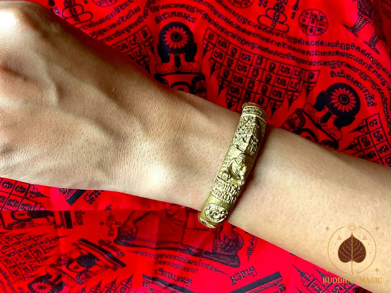 Ce bracelet sacrĂ© de style ancien est une Ćuvre rituelle puissante consacrĂ©e par le trĂšs vĂ©nĂ©rable Luang Phor Kliang TĂ©cha-Thammo, maĂźtre respectĂ© du Wat Srithad, Ă©galement connu sous le nom de Wat Non Kaed, dans la province de Srisaket.