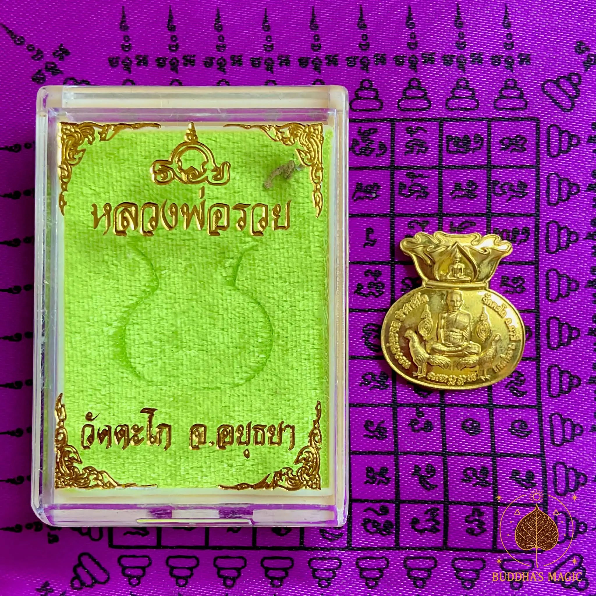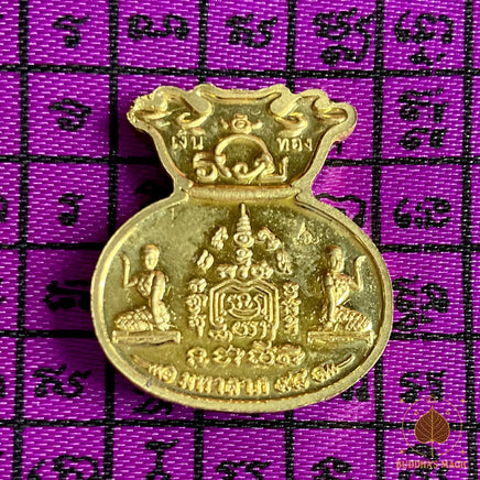 Cette précieuse amulette Rian Mahalap en forme de sac de fortune fut consacrée en 2020 au Wat Tako, le temple célèbre du très vénérable Luang Phor Ruay Pasatiko, situé à Ayutthaya. Pièce dorée à forte réputation de richesse, elle est traditionnellement conservée dans le portefeuille, la caisse d’un commerce ou dans un sac/vase de fortune.