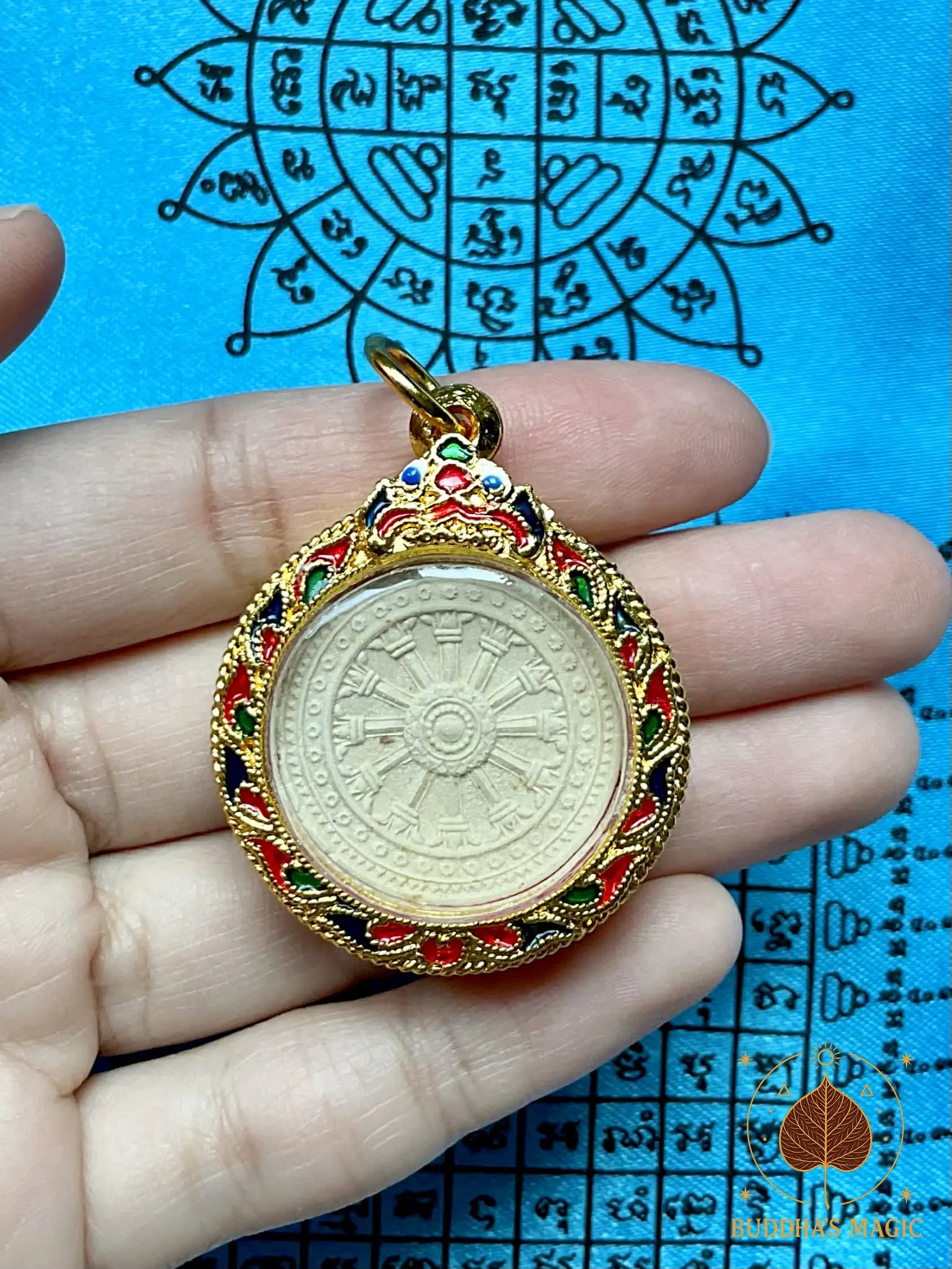 Portée en pendentif, cette amulette agit comme un rappel constant de la voie juste, de la lucidité et de la continuité de l enseignement du Bouddha, tout en apportant une protection spirituelle sobre et stable.