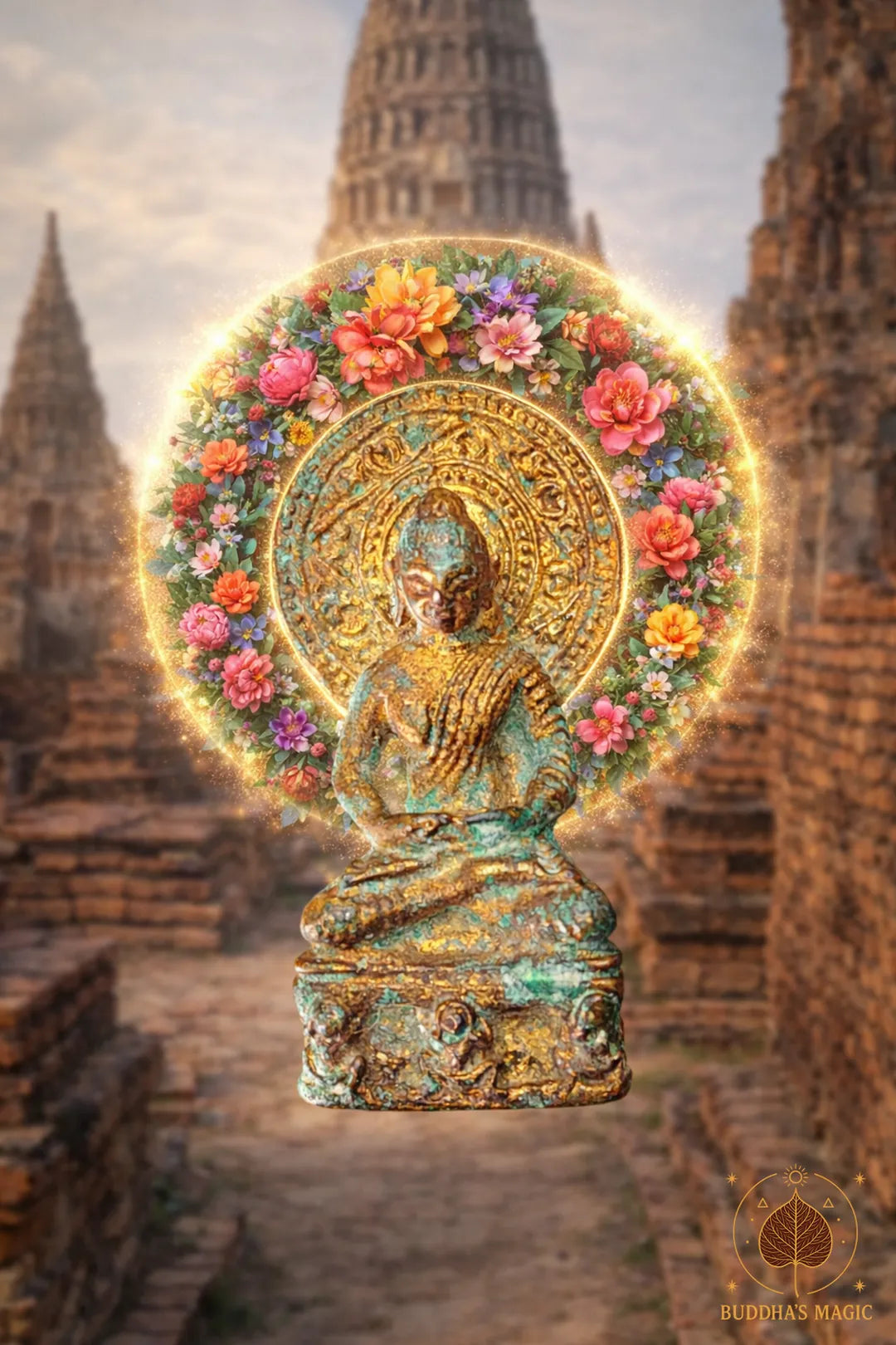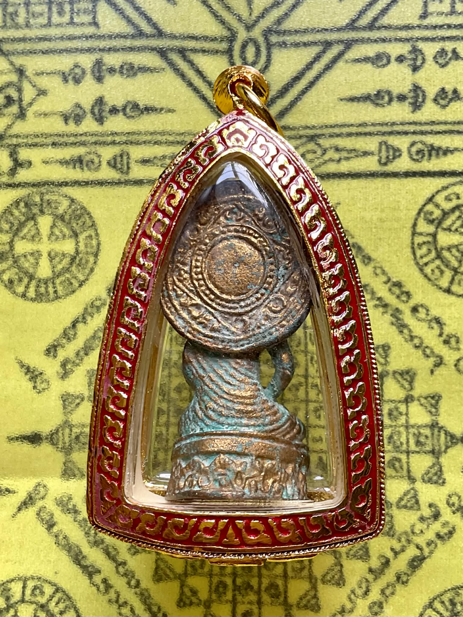 Amulette thaï ancienne du Bouddha en méditation – Bronze et or – XIXe siècle # 818 Magic of the Buddha
