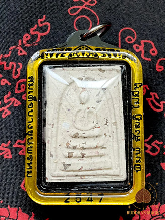 Découvre cette belle amulette Phra Somdej Pim Sanghati du Wat Bang Khun Phrom (également appelé Wat Mai Amataros), bénie en 2004 à Bangkok. Cette série remarquable contient une proportion authentique de poudre d’antiques Phra Somdej Bang Khun Phrom consacrées à l’origine par le très vénérable Luang Phor Toh du Wat Rakang, l’une des figures les plus sacrées et légendaires de toute l’histoire des amulettes thaïes.