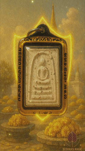 Dans le silence du vieux stupa, là où dorment les poussières bénies du Wat Rakang, la vibration du Somdej s’éveille encore. Cette amulette porte en elle l’écho des prières d’antan, la force tranquille d’un Dharma qui traverse les siècles et la bénédiction d’un Bouddha immobile, enraciné dans la compassion. Porter cette Somdej, c’est inviter un fragment de cette ancienne lumière dans son propre chemin.