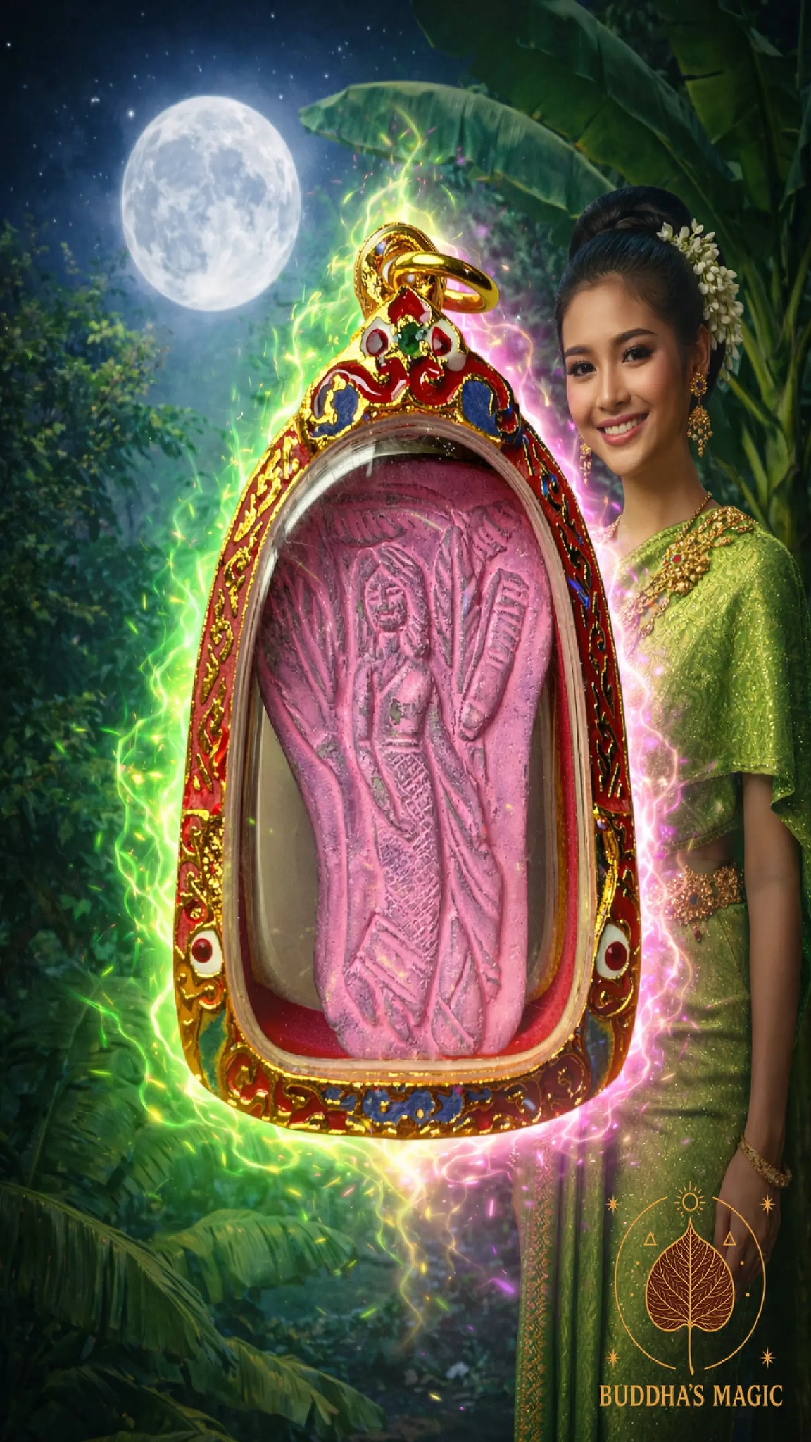 🌿Lorsque la douceur de Nang Tanee s’éveille, le monde s’adoucit autour de toi. Les regards deviennent bienveillants, les portes s’ouvrent sans effort, et la chance circule comme une brise parfumée entre les feuilles du bananier sacré. Cette amulette murmure à l’univers ton intention, et l’univers écoute.