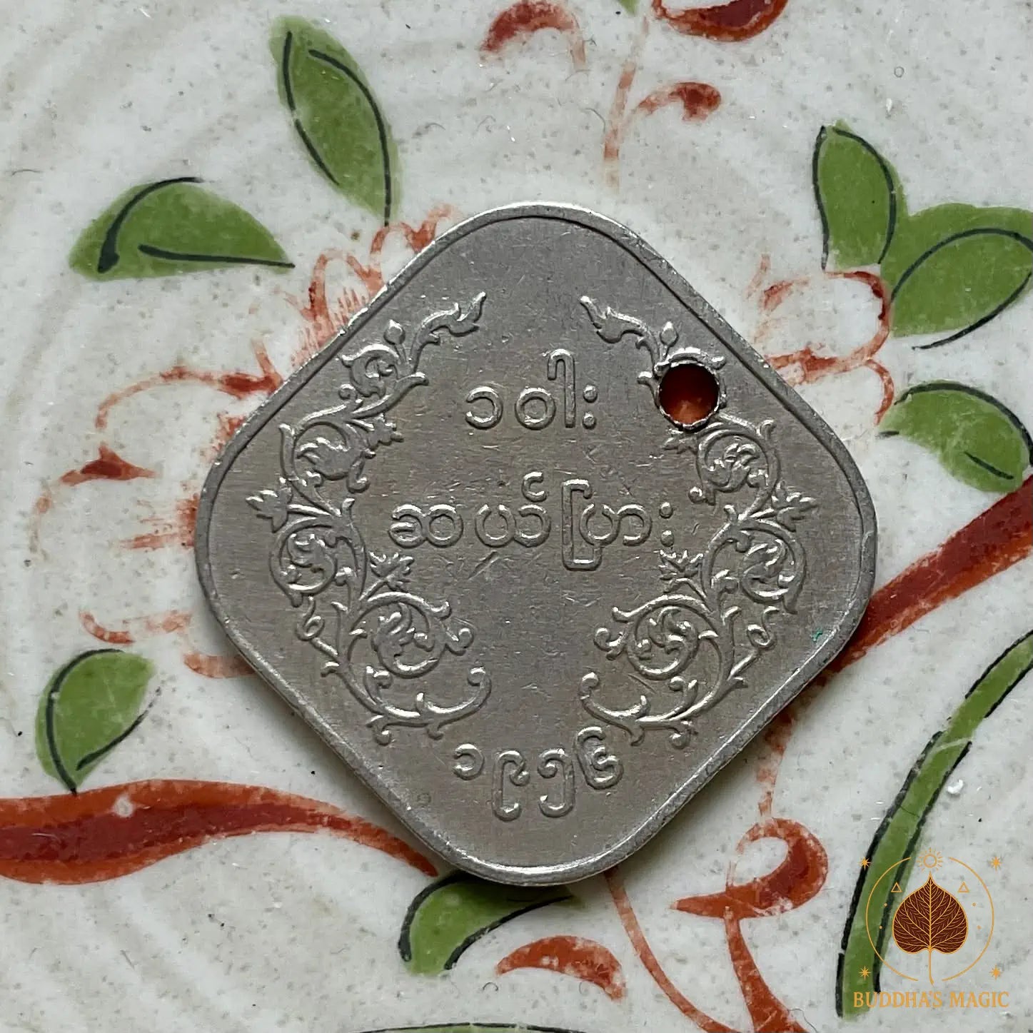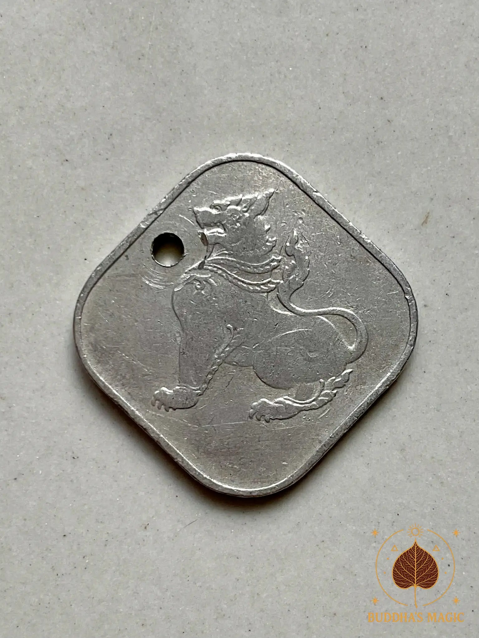 Cette monnaie en alliage léger faisait partie de la circulation courante après l’indépendance de la Birmanie. Si sa valeur faciale est modeste, son iconographie est profondément symbolique : le Chinthe est un protecteur sacré, associé à la vigilance, à la force morale et à la protection des lieux saints.