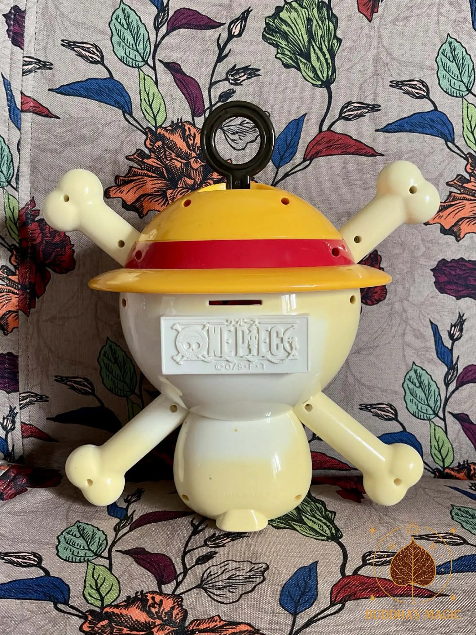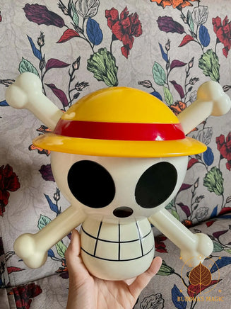 Cette tirelire représente le célèbre Jolly Roger de Luffy, emblème iconique de l’univers ONE PIECE. Il s’agit d’un objet officiel sous licence, édité en 2018, initialement distribué exclusivement au Japon dans un contexte promotionnel.