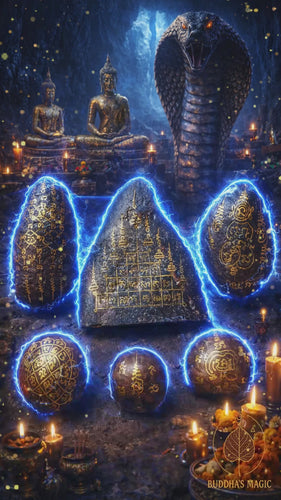 Dans l’obscurité des grottes sacrées d’Uttaradit, la pierre brille d’une lueur sourde, presque astrale. On raconte que le Lek Namphi se forme là où les courants invisibles de la terre rencontrent l’énergie des anciens rites royaux. Lorsque les yant sont tracés dessus, le métal semble se réveiller : une vibration grave se manifeste, comme si une ancienne force protectrice se souvenait de son rôle. Ces pépites sont des gardiennes silencieuses, prêtes à veiller sur la maison et à nourrir les amulettes de ceux qui marchent sur la voie de la protection intérieure.