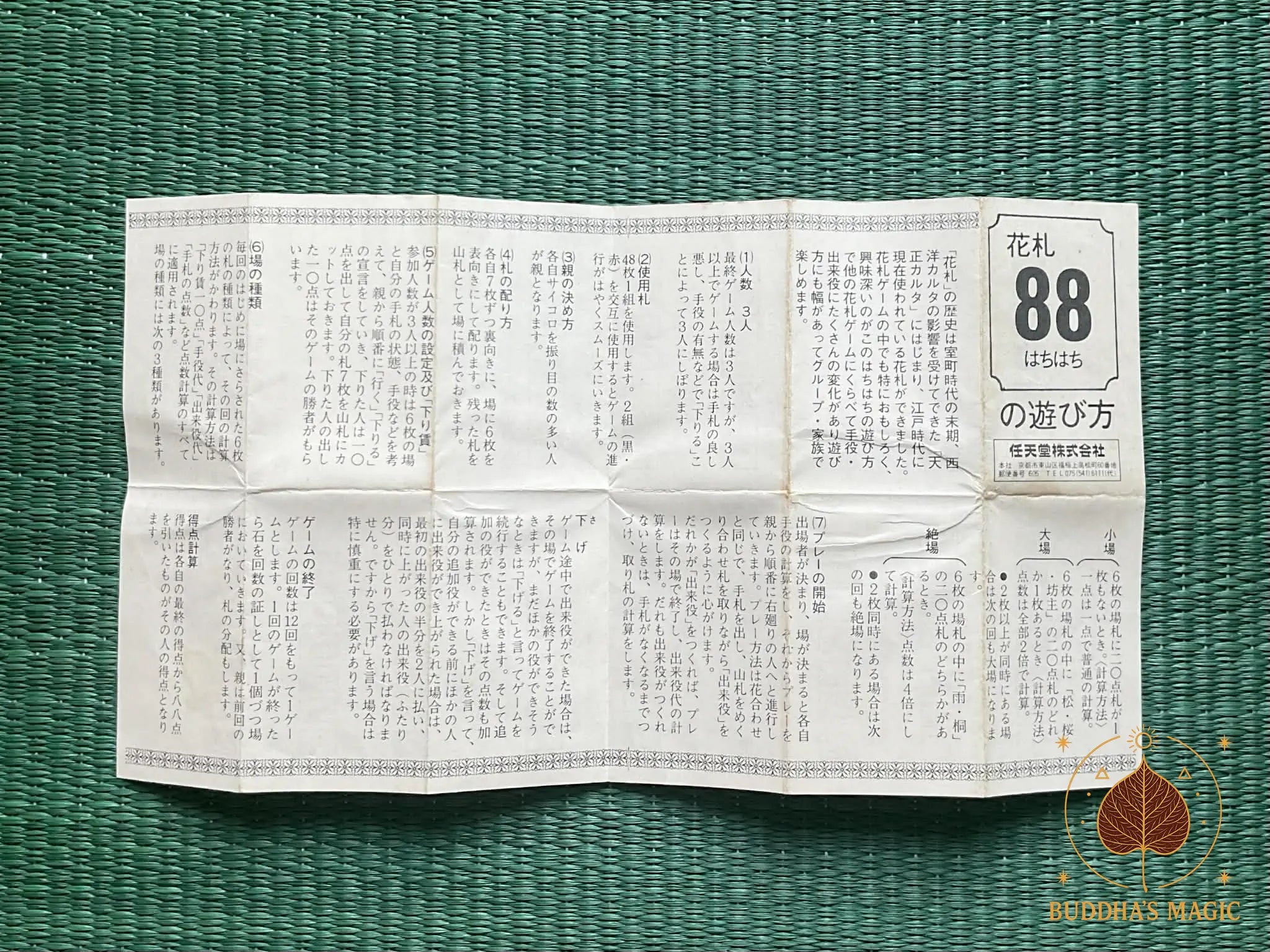 Authentique jeu de Hanafuda japonais édité par Nintendo, dans la célèbre version Dai Tengu sur boîte noire. Un très bel objet de collection et de culture japonaise, fabriqué à Kyoto au Japon, bien avant l’époque des consoles de jeux.