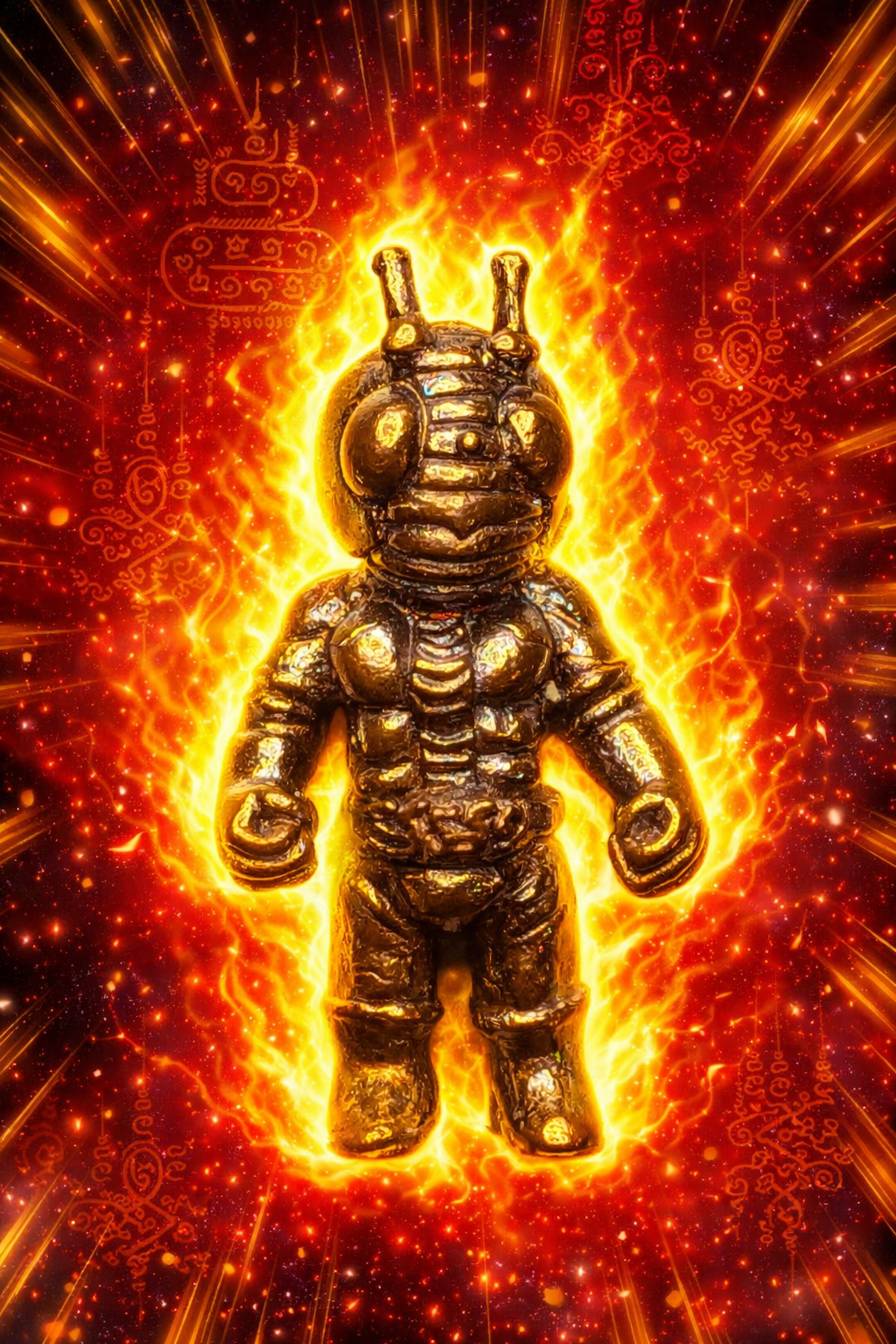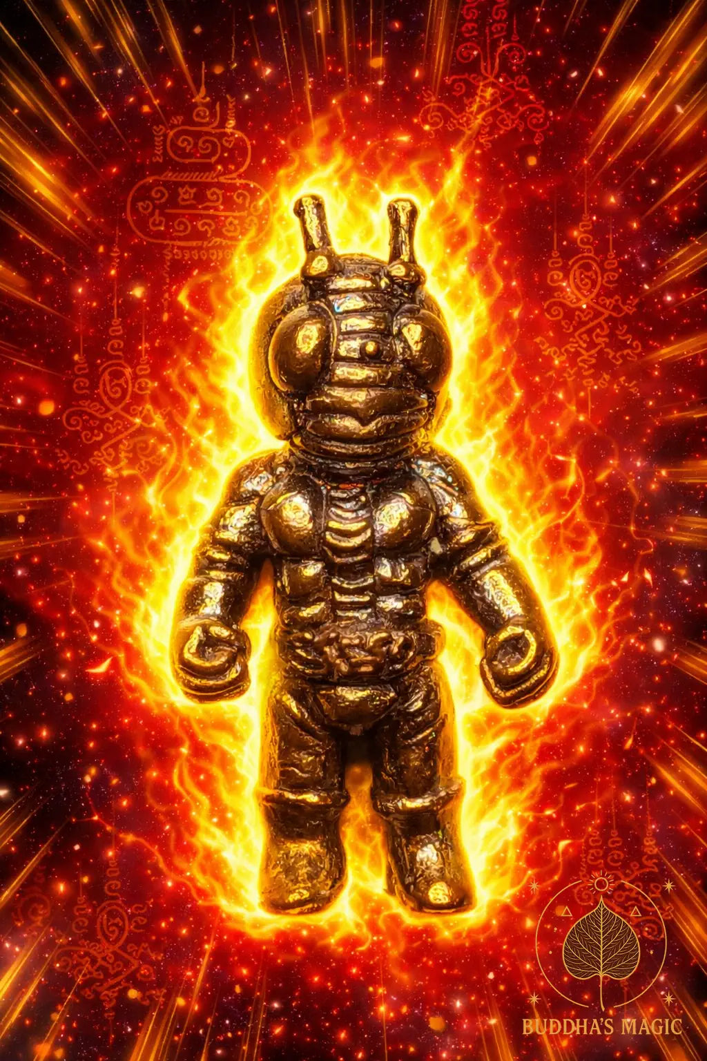 Né de la rencontre entre la ferveur rituelle et l’imaginaire moderne, Ae Mot Daeng Mahahut veille comme un gardien silencieux. Il marche entre les mondes, armure spirituelle invisible, protecteur des esprits audacieux et des cœurs indomptés.
