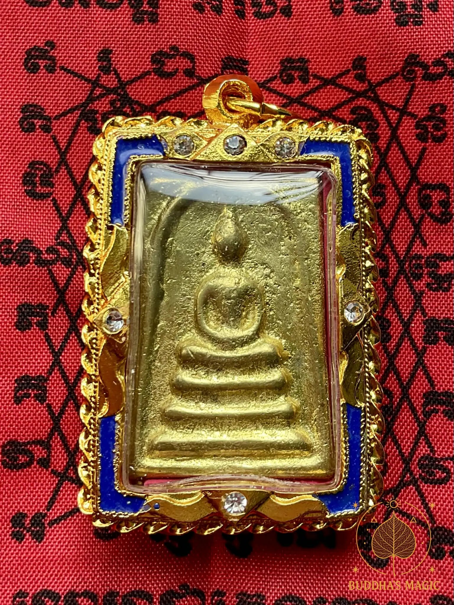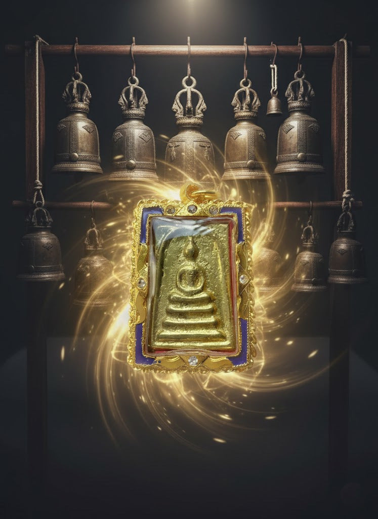 Selon la tradition thaïlandaise, une partie du métal utilisé provient d’anciennes cloches de temple. Ces cloches, imprégnées des prières, des mantras et des appels rituels, transmettent à l’amulette une vibration particulière liée au charisme, à l’autorité naturelle et à la reconnaissance sociale.