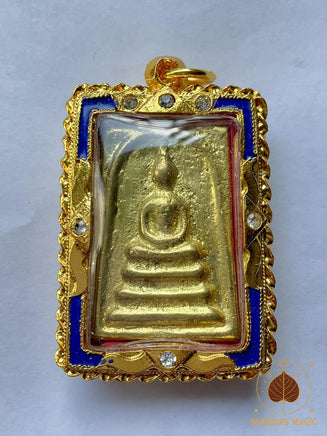 Cette grande amulette Phra Somdej au Nagas est une création alchimique puissante réalisée en Lek Lai See Thong, un lek lai doré rare et très recherché, façonné à Bangkok par un alchimiste traditionnel.