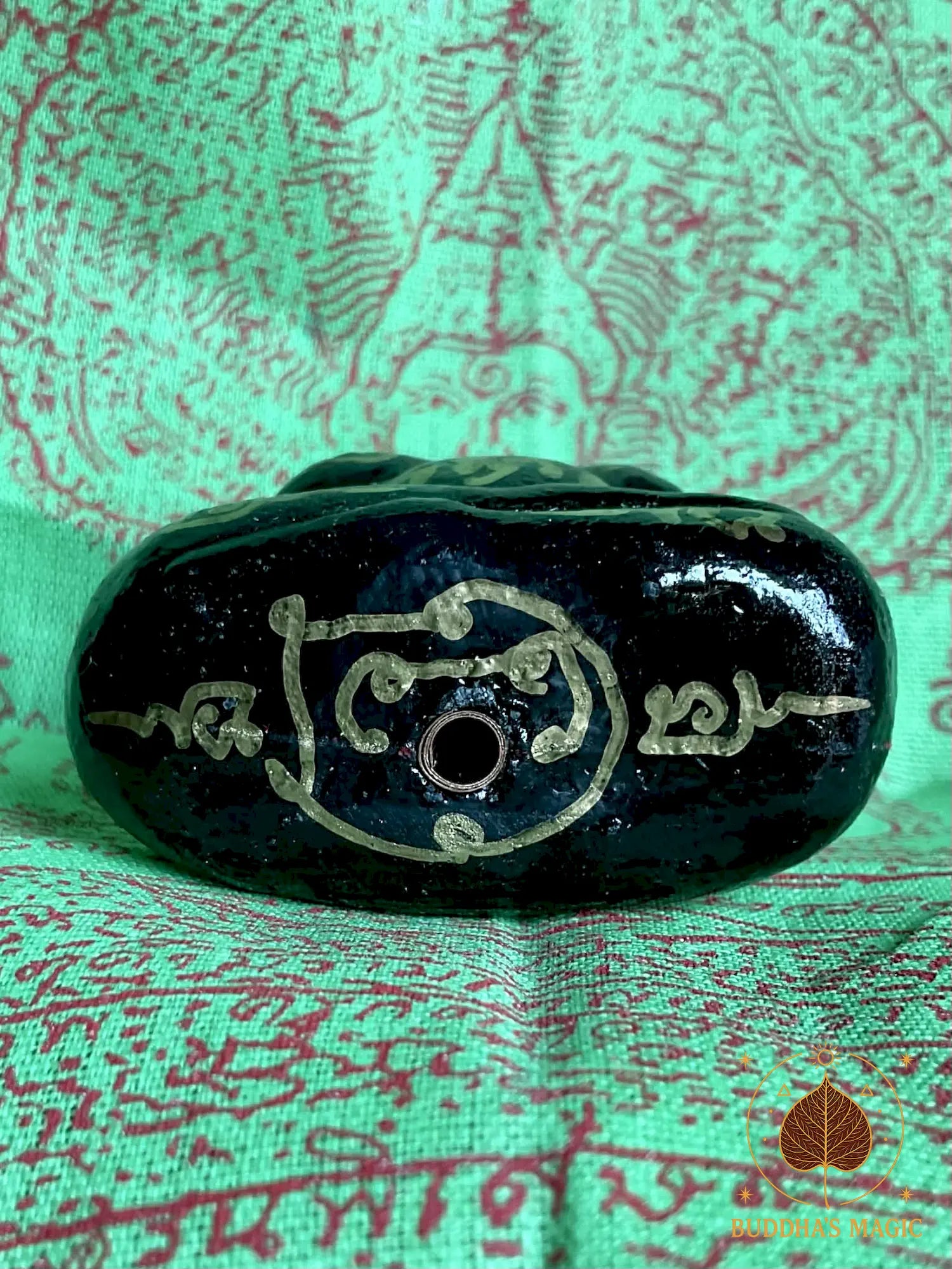 Composition sacrée : Wan roe (herbes secrètes de fermeture ésotérique) – Phong tabai (poudre rituelle d’attraction) – Poussière de fer mystique lek namphi – huile et médiums organiques traditionnels, takut en cuivre dans la base.