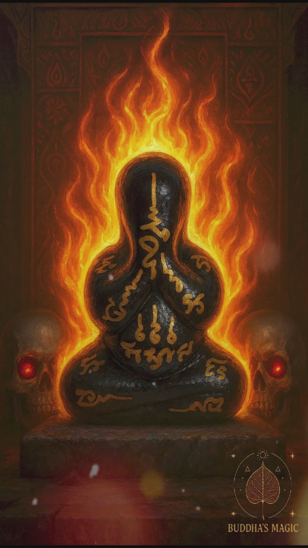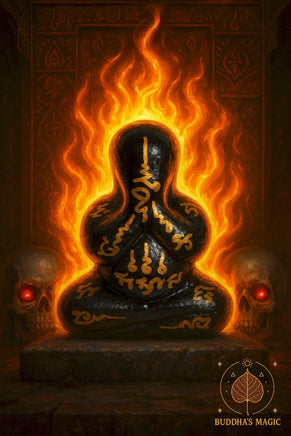 Lorsque les portes du monde se ferment, Phra Pidta veille dans le silence noir des mystères anciens. La poudre lek namphi murmure des secrets de fer céleste, et les herbes wan roe se replient sur elles-mêmes comme une coquille protectrice. Dans la paume du pratiquant, l’esprit de Sapahn Soong se manifeste : un souffle dense, immobile, qui repousse l’ombre et attire la fortune cachée. Ce Phra Pidta n’est pas seulement une statuette : c’est un gardien scellé, un œil fermé tourné vers l’intérieur, là où naît la véritable invincibilité.