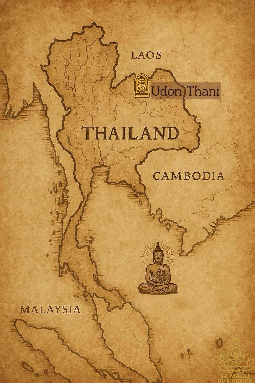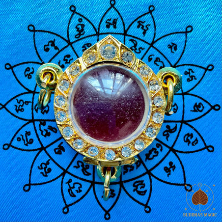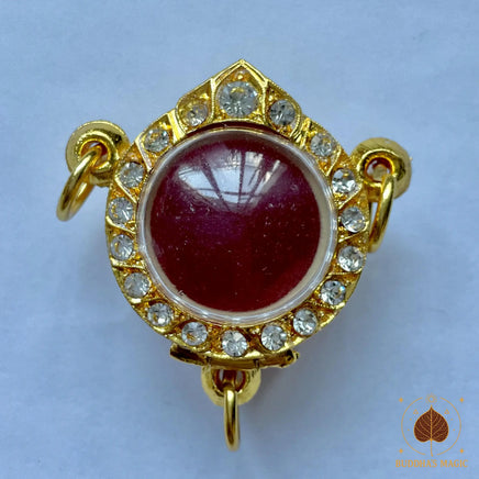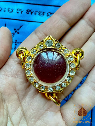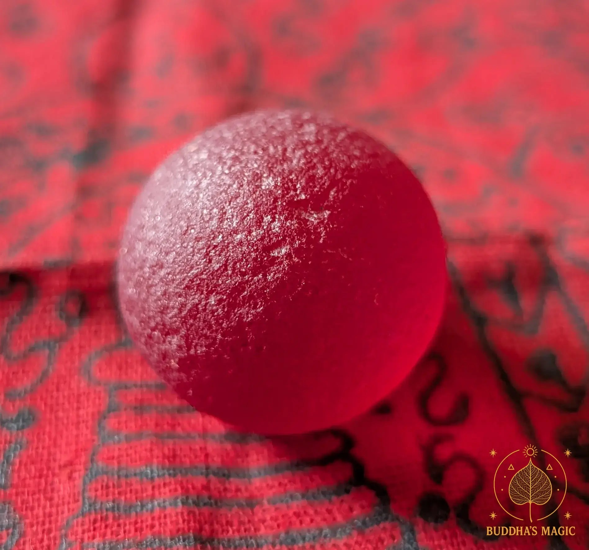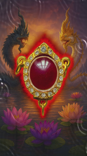 Ces puissantes billes de pierre des Nagas Dta Payanag proviennent des zones sacrées de la région d'Udon Thani, terre réputée pour ses légendes liées aux Nâgas, serpents géants gardiens des eaux et des passages vers les mondes subtils. Chaque bille, brute et rouge sombre, présente une texture irrégulière naturelle, symbole de son origine tellurique. Les pièces sont proposées dans un reliquaire doré orné de brillants, prêt à être porté ou installé sur un autel.