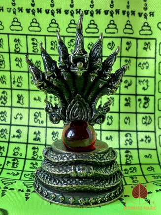 ✨ Divinité : Roi des Nâgas à sept têtes, avec petite amulette de Phra Naphok sous la base