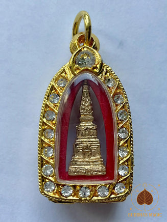 Cette amulette sacrée Phra That Phanom renferme de précieuses poudres rituelles de reliques provenant du mythique stupa de Phratat Phanom, l’un des lieux les plus vénérés du nord-est de la Thaïlande.