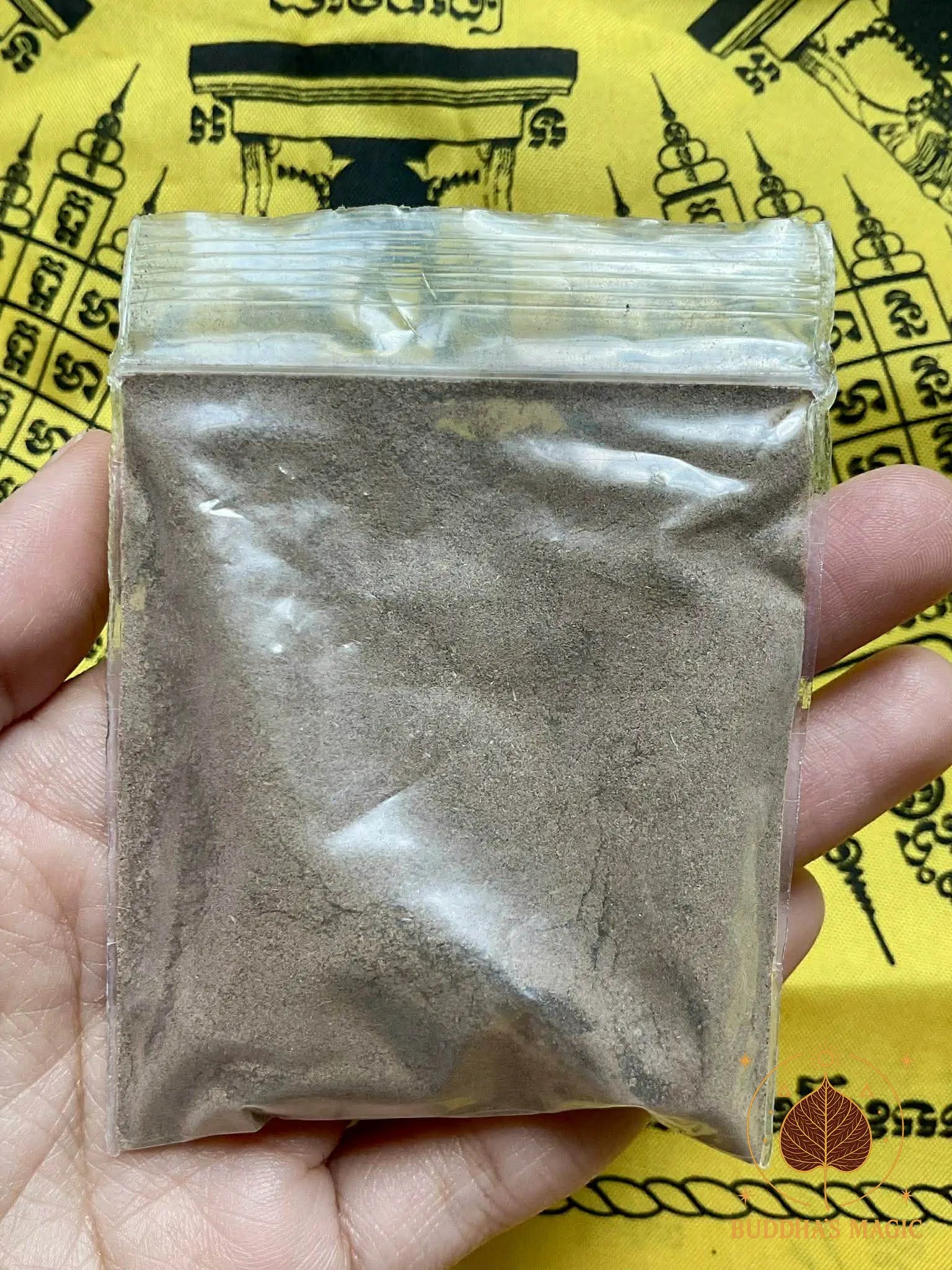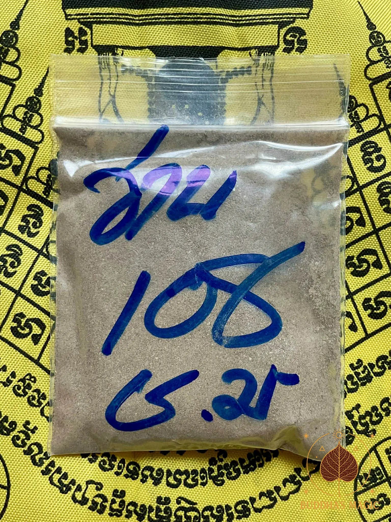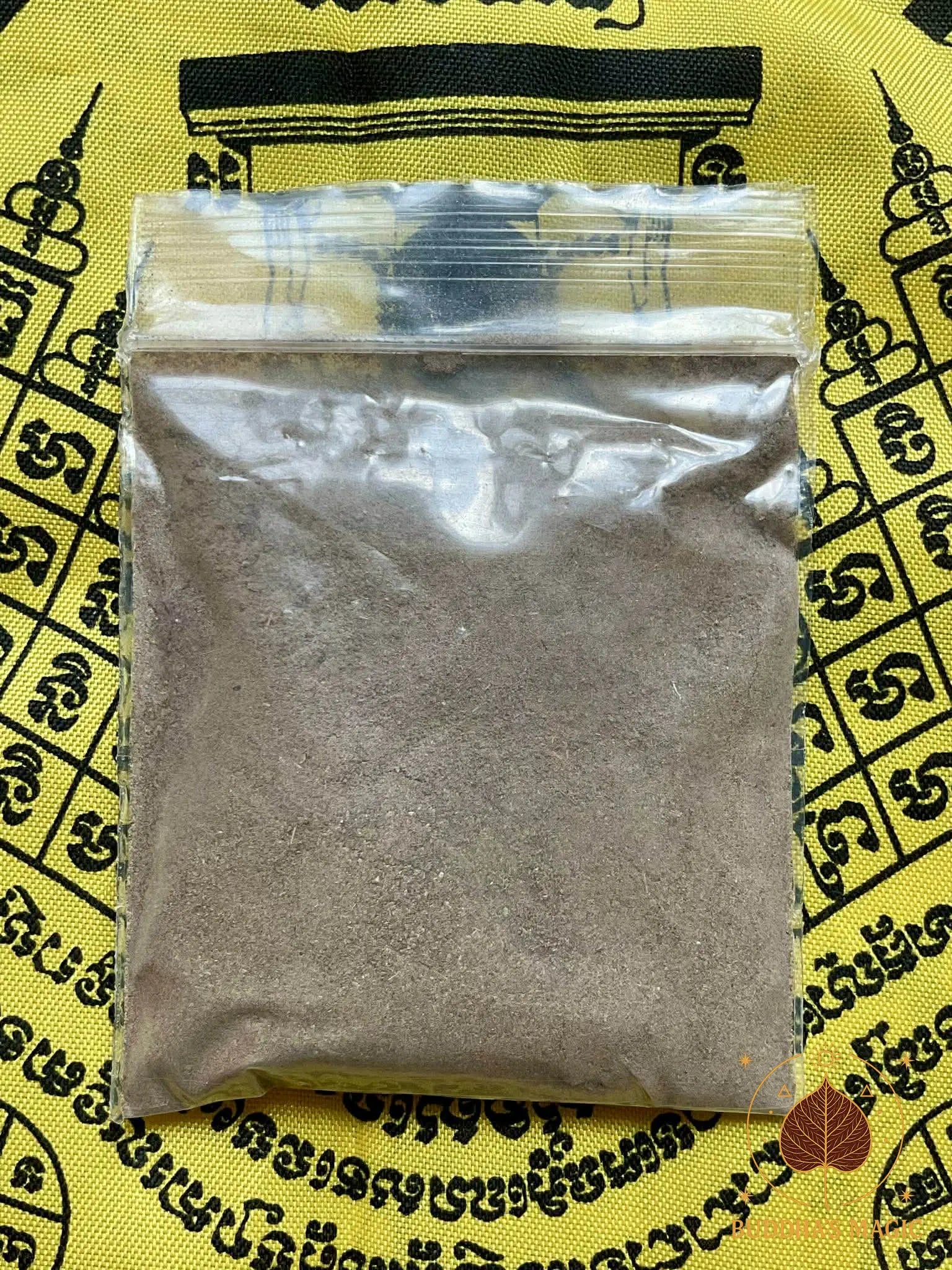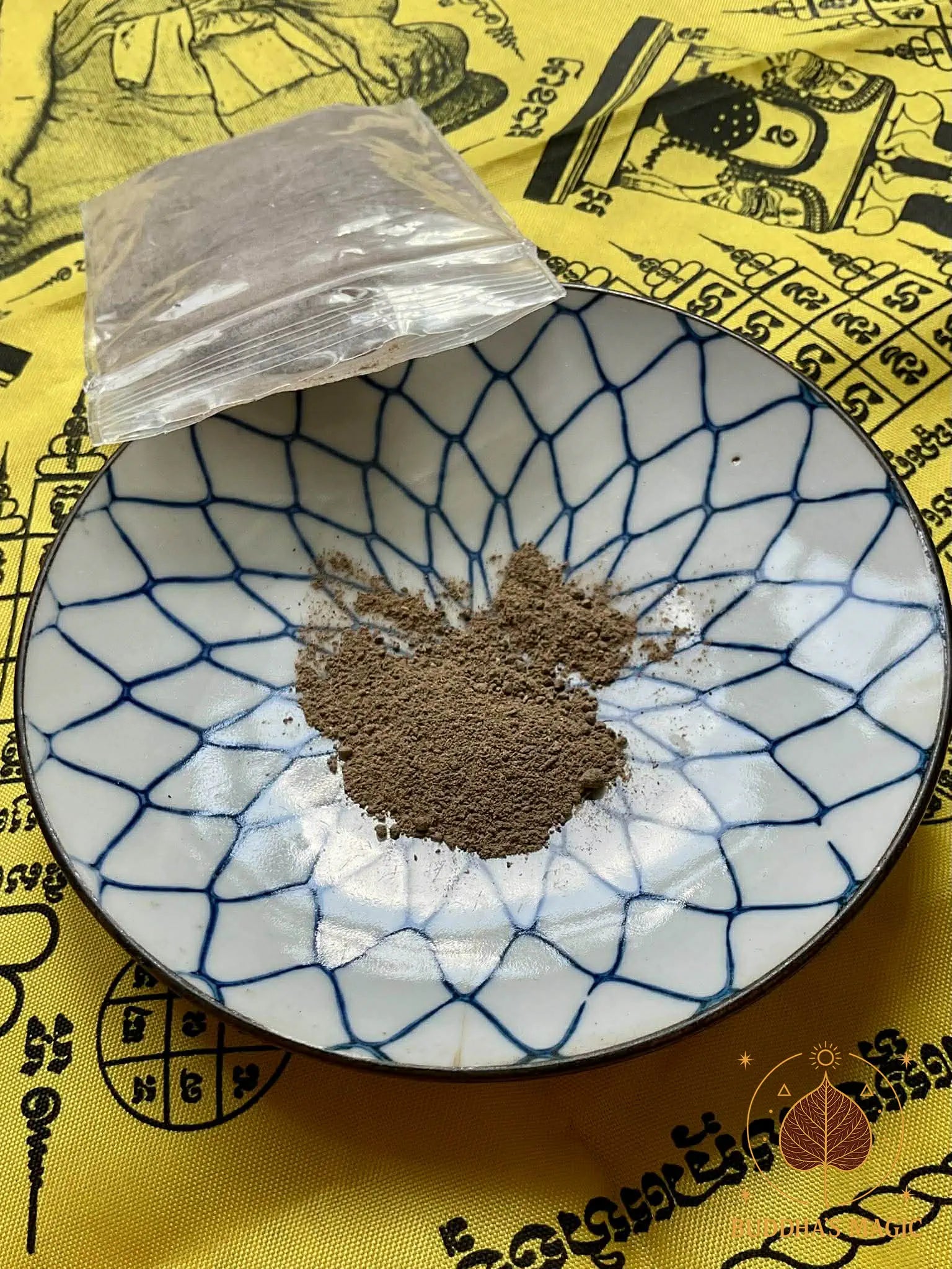 Cette poudre sacrée traditionnelle, appelée Phong Neung Roi Perth Wan, est une composition rituelle exceptionnelle réalisée à partir de 108 plantes sacrées, selon une méthode ancestrale transmise dans la lignée du très vénérable Luang Phor Hong du Wat Petchaburi, dans la province de Surin.