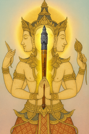 Dans le silence des temples du sud, les maîtres disent que la Mae Kru trace l’invisible comme une plume sur l’eau. Quand elle est invoquée, Phra Phrom ouvre les chemins, apaise le destin, et fait prospérer ce qui doit fleurir.