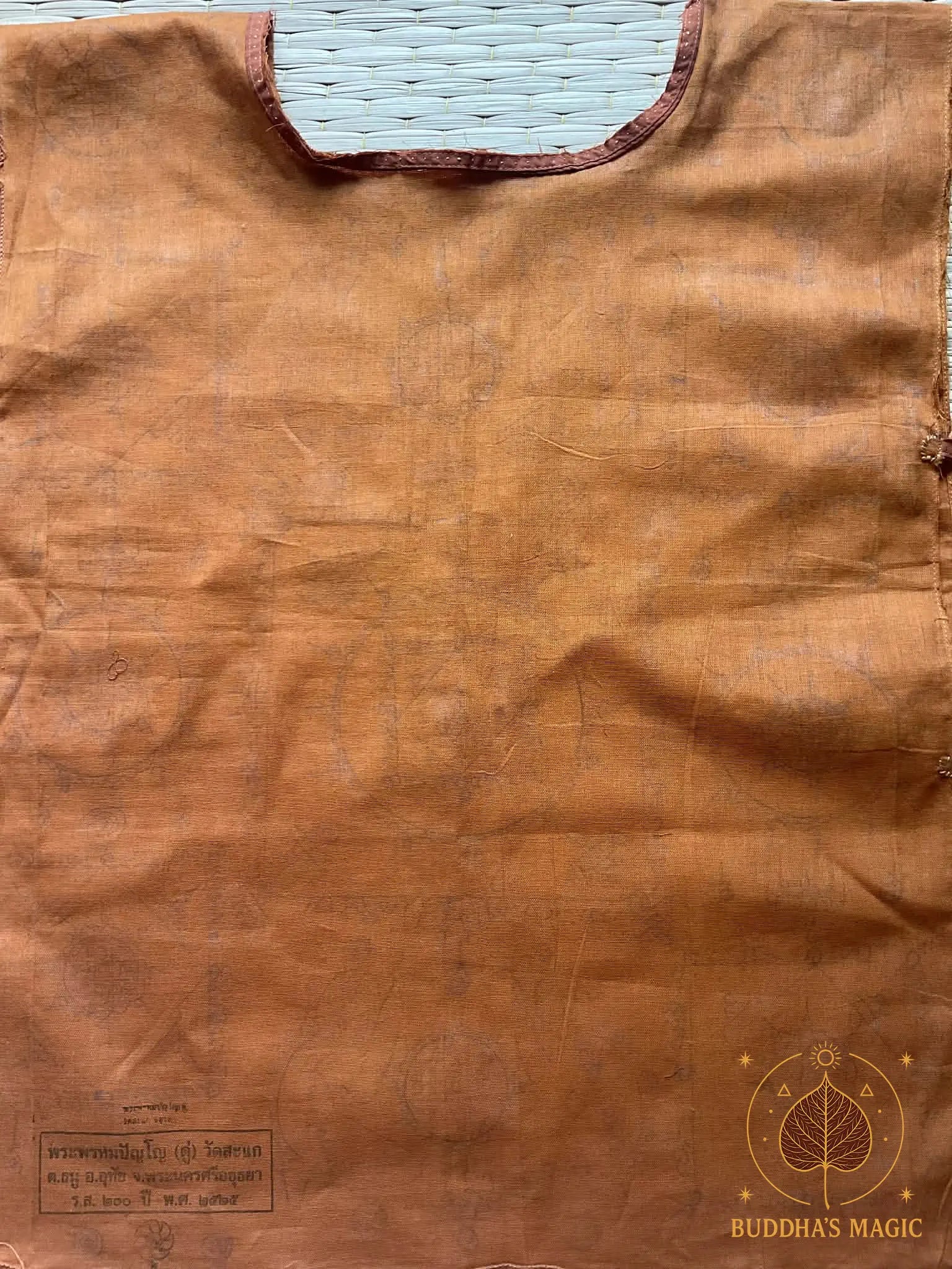 Cette chemise rituelle Seuar Yant est un objet sacré exceptionnel provenant du Wat Sakai (Ayutthaya). Entièrement décorée à la main par les moines du temple, elle fut ensuite consacrée en 1982 par le Très Vénérable Luang Phor Dooh à l’occasion des 200 ans de la fondation du Wat Sakai.