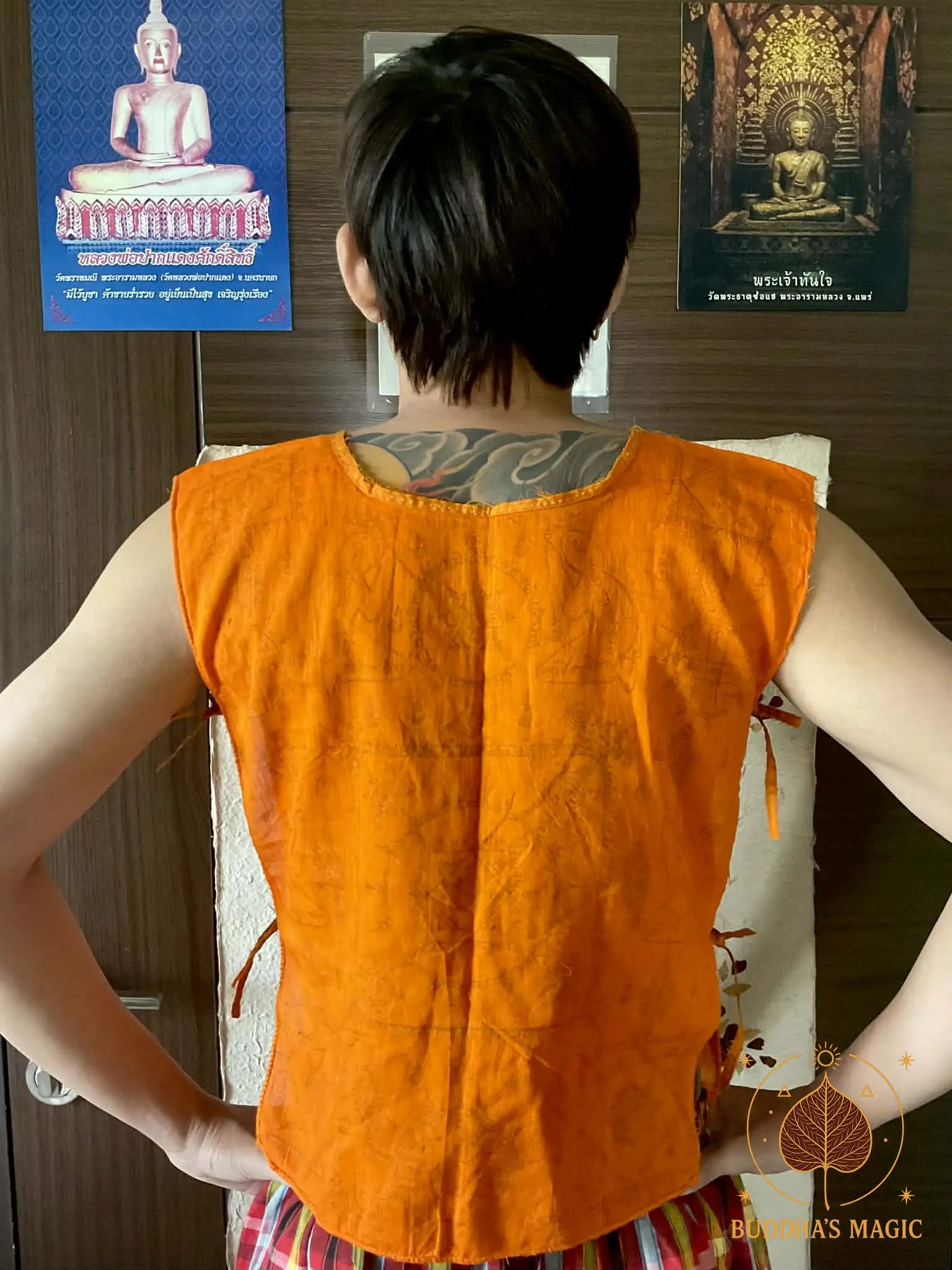 En revêtant cette chemise sacrée, on enfile plus qu’un vêtement : on accueille la bénédiction directe de Luang Phor Dooh et la protection ancestrale du Wat Sakai. Les yant tracés à la main activent une énergie profonde, douce et lumineuse, comme un bouclier spirituel enveloppant le pratiquant. Telles des armures de mérites, ces chemises furent pensées pour guider, purifier et protéger dans les chemins visibles… comme dans ceux qui s’ouvrent à l’intérieur.